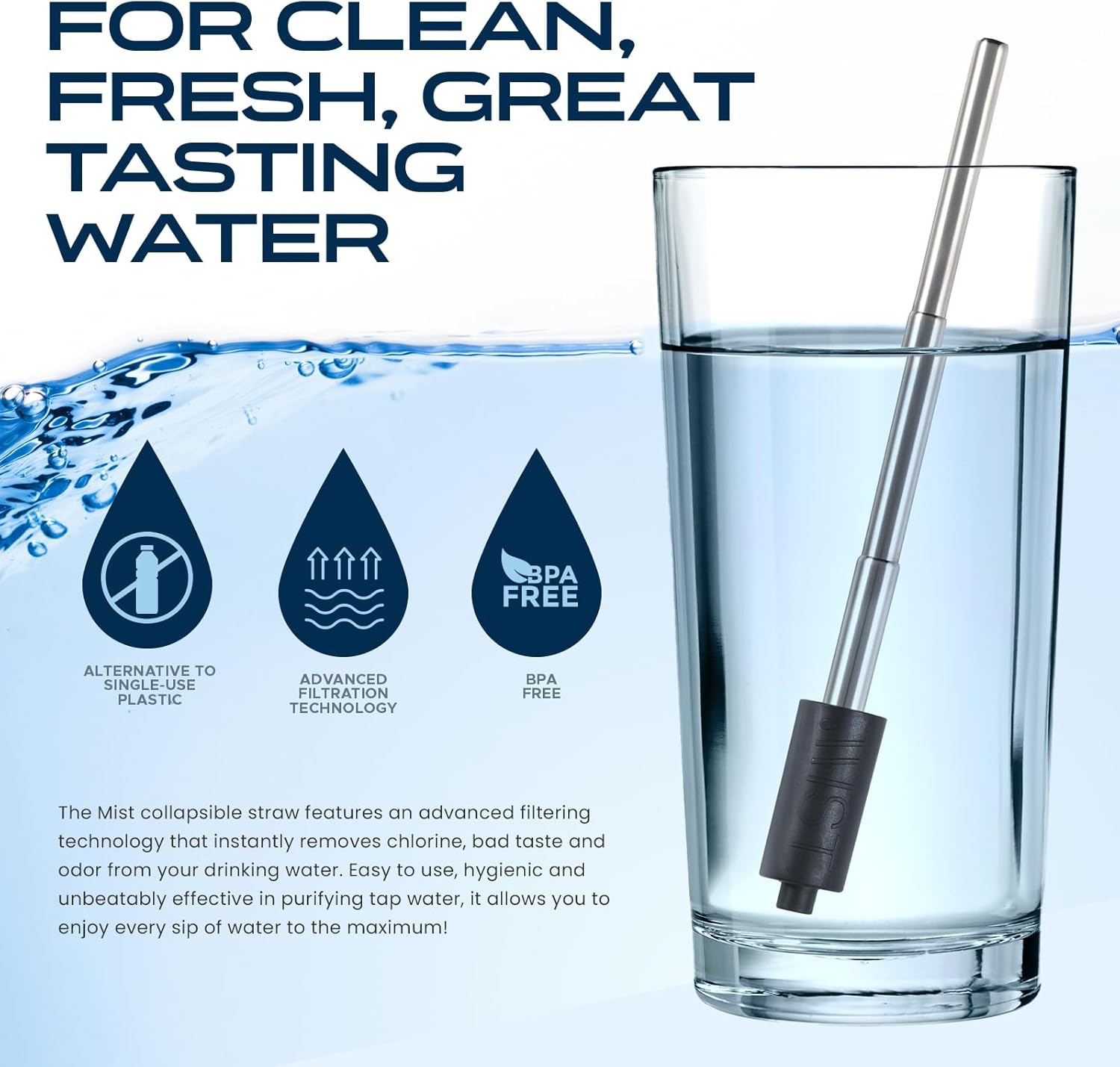 [Filtering Straw for Clean, Fresh, Great-Tasting Water] – The Mist collapsible straw features an advanced filtering technology that instantly removes chlorine, bad taste and odor from your drinking water. Easy to use, hygienic and unbeatably effective in purifying tap water, it allows you to enjoy every sip of water to the maximum!
