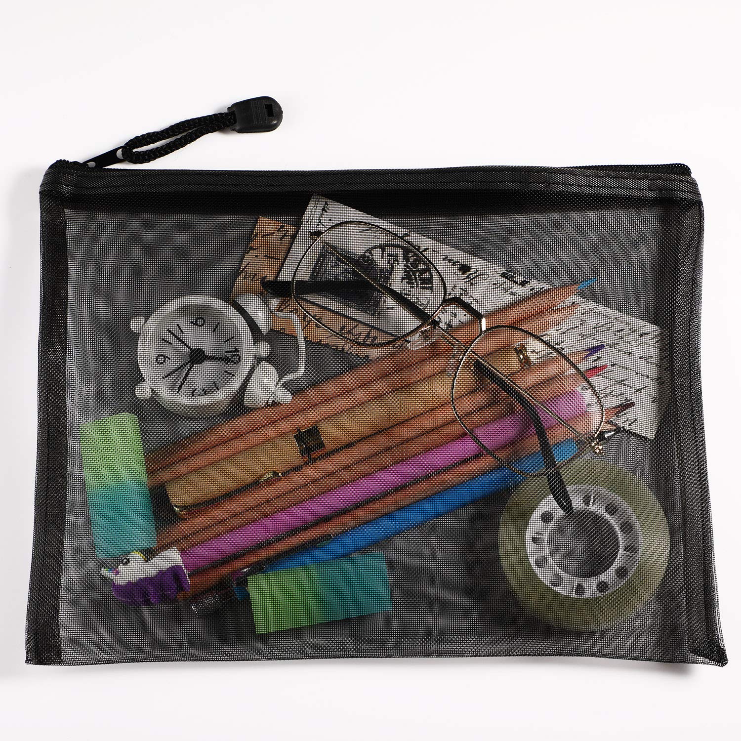 Dimension: each mesh bag measures approx. 9.5 x 7.1 inches, it has enough capacity to hold your stationery and makeup tools, lightweight and portable for you to carry