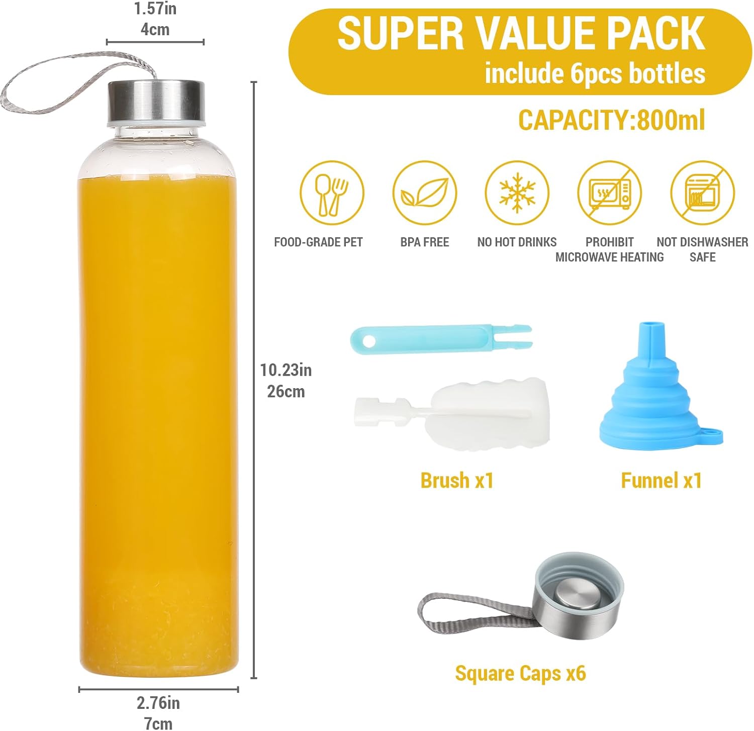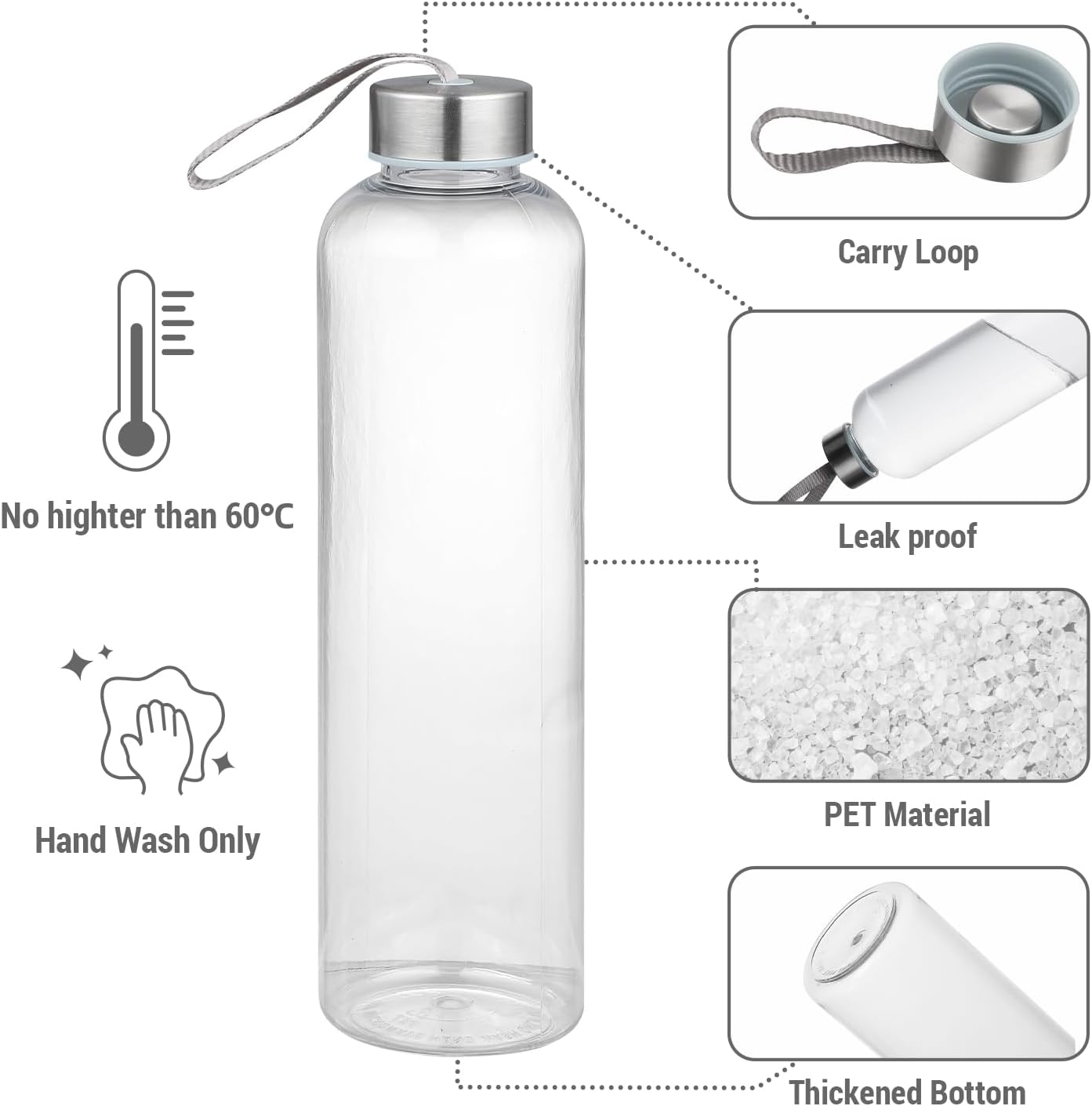 Suitable Capacity: This PET transparent water bottle has a capacity of 27 ounces (about 800 ml), which can hold enough water or other beverages to meet your drinking needs in daily life