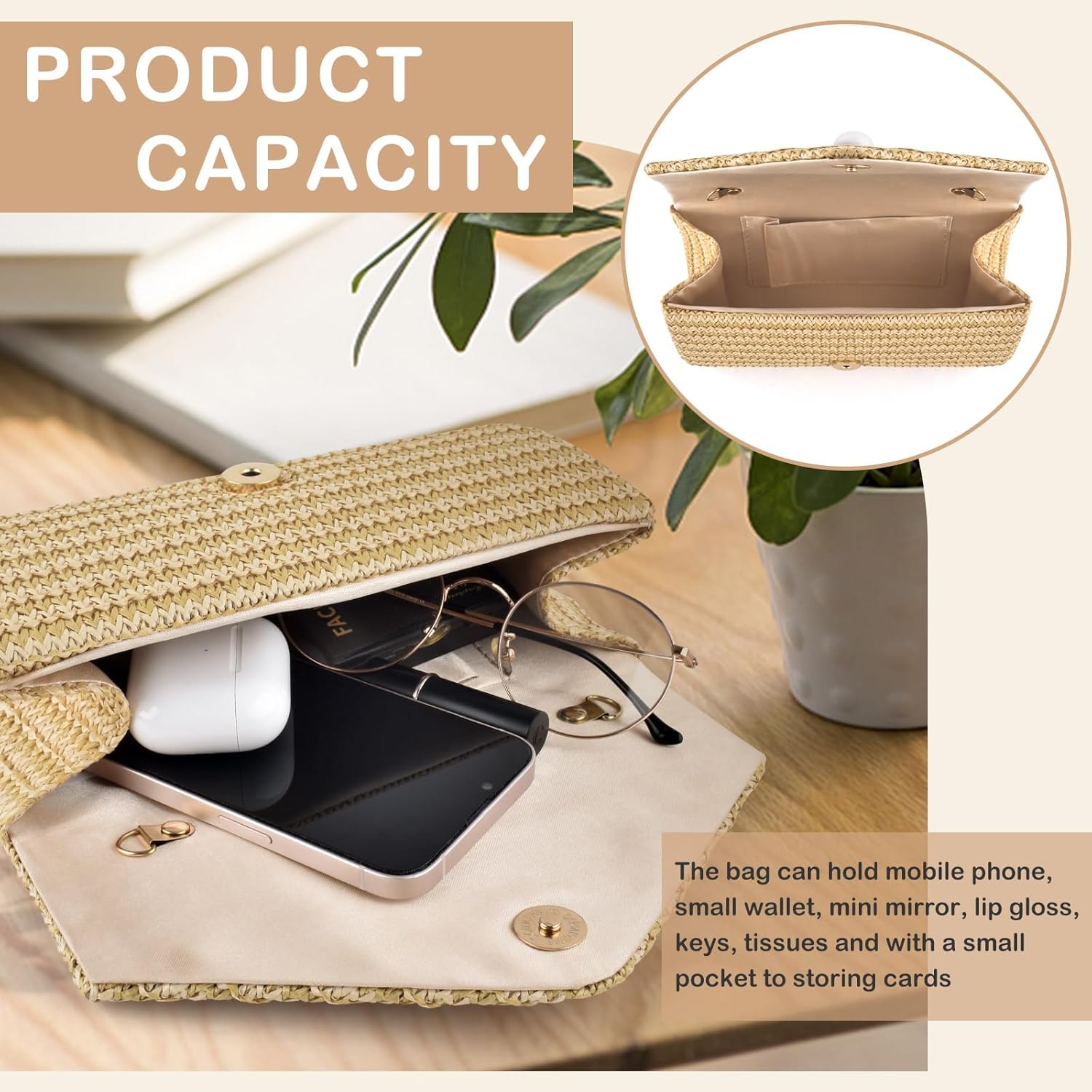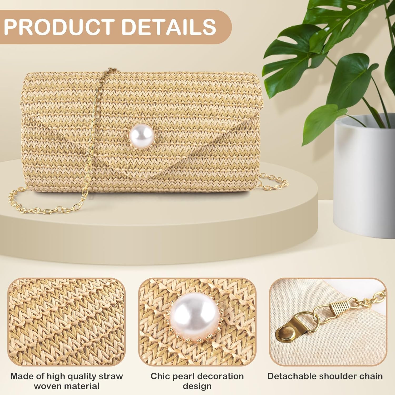 PACETAP Straw Clutch Purse for Women, Pearl Decoration Boho Crossbody Bags Handbags for Beach Travel Vacation Party Prom