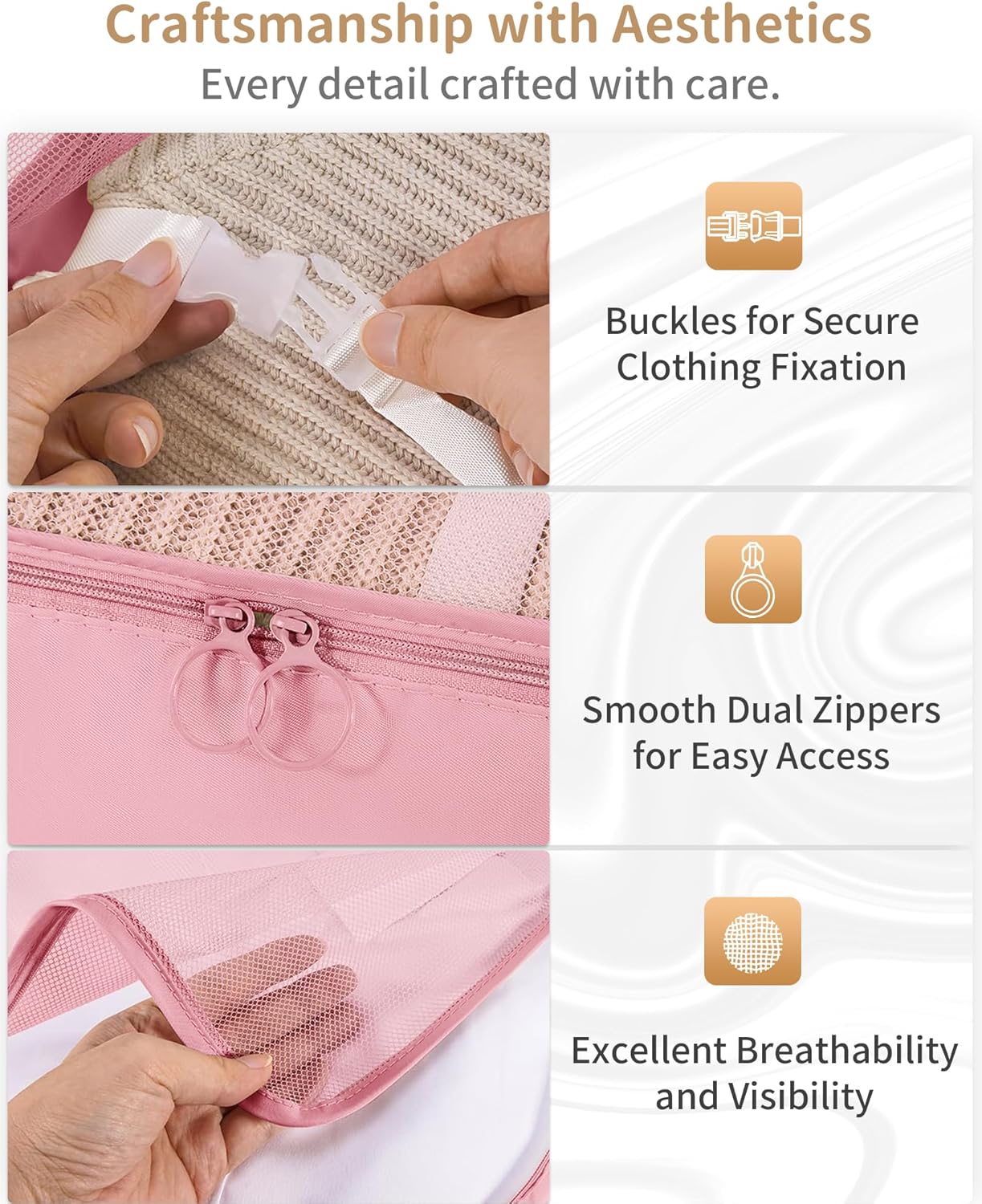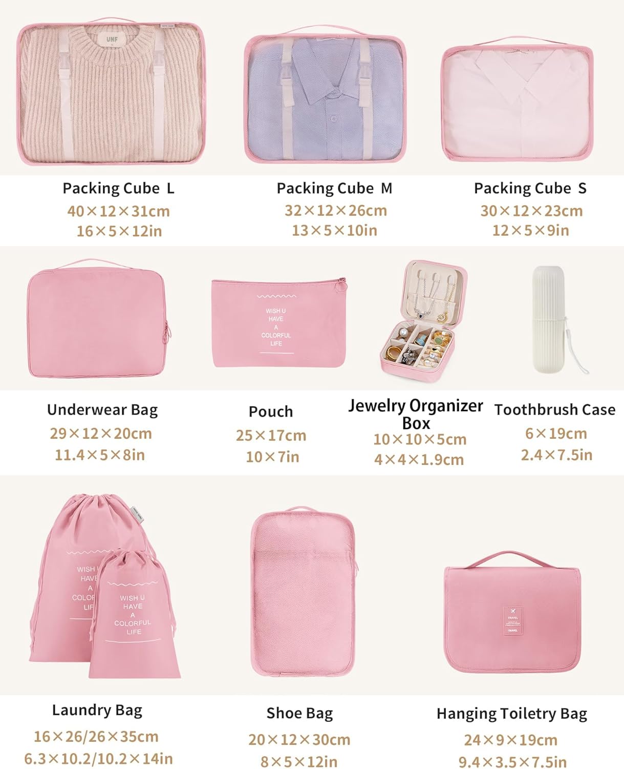 Packing Cubes 11 Set, Suitcase Organizers, Luggage Organizer Bags for Travel, Packing Cubes for Travel, with Toiletry Bag, Travel Essentials,Pink
