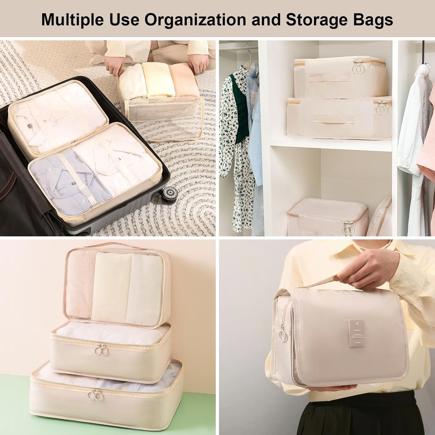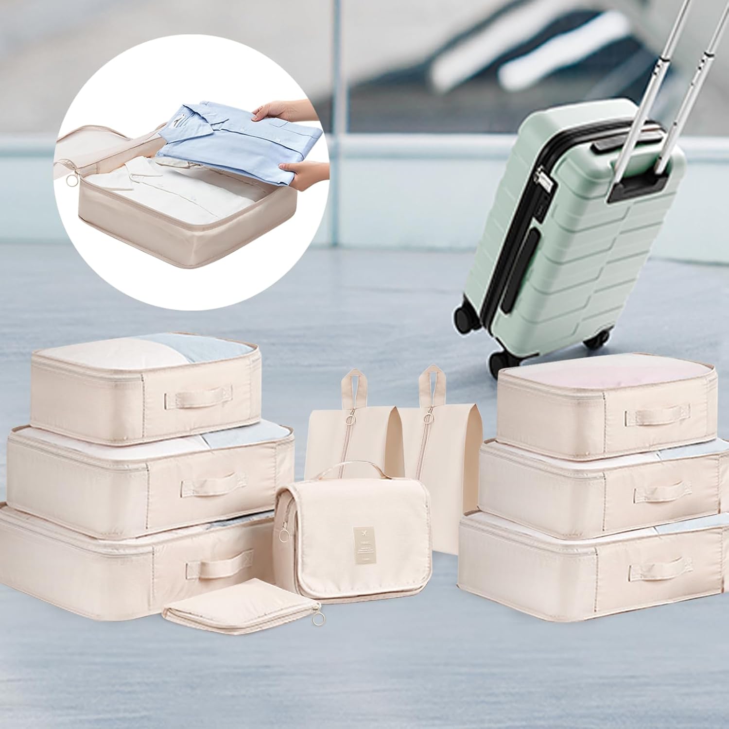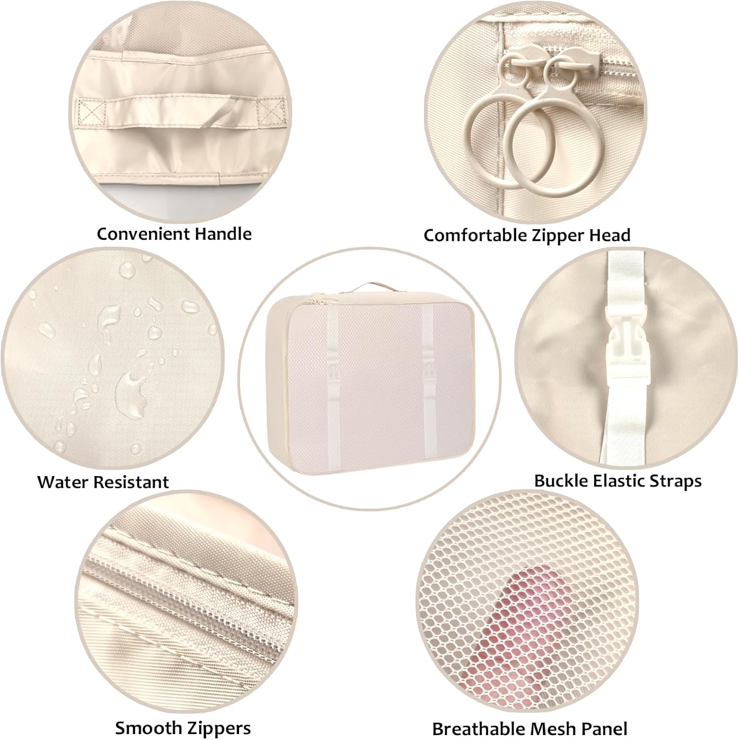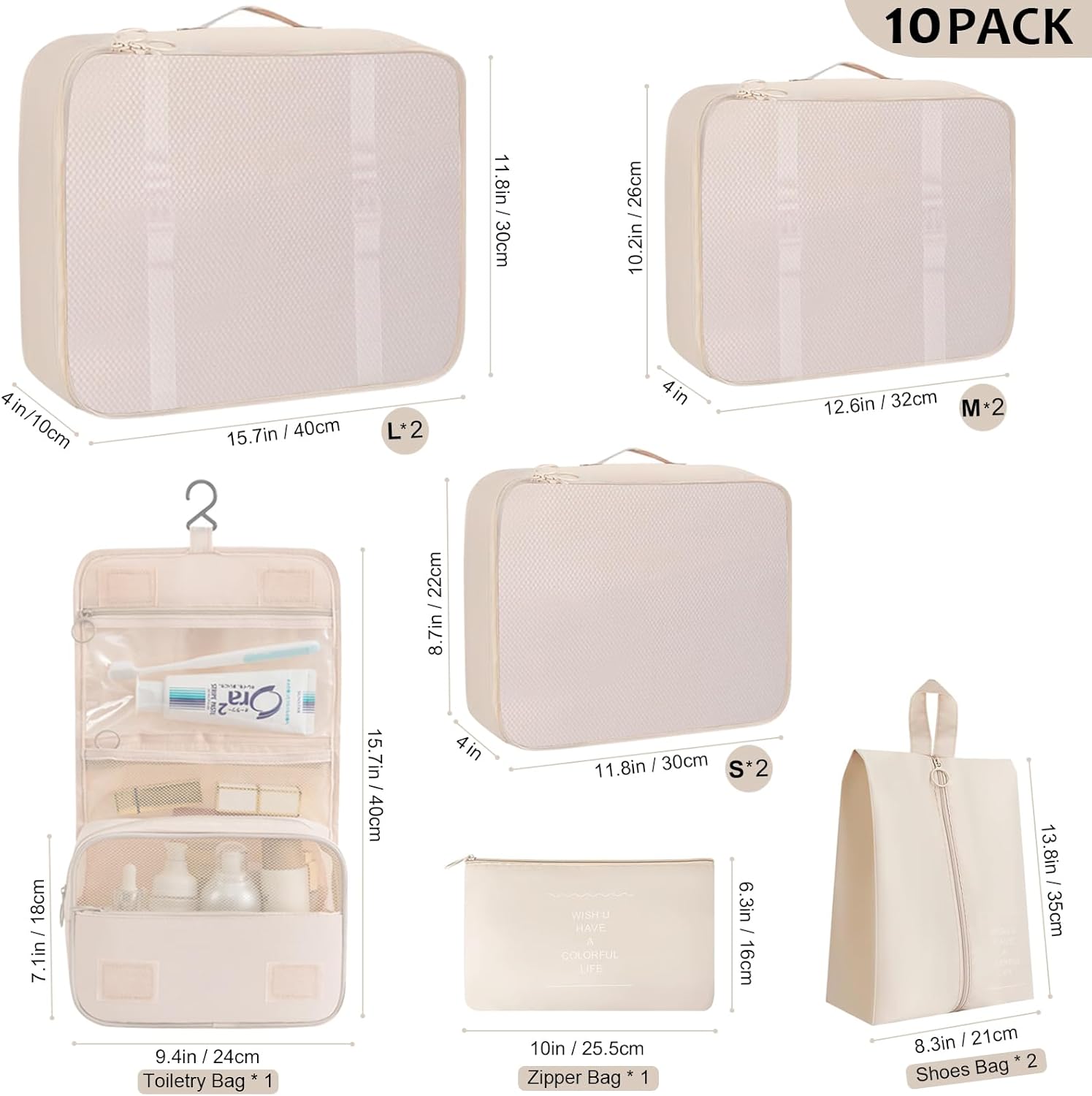 Packing Cubes for Travel 10 Set, Suitcase Organizer Travel Cubes for Luggage Organizer Bags Travel Set Packing Cube for Travel Essentials, Cream