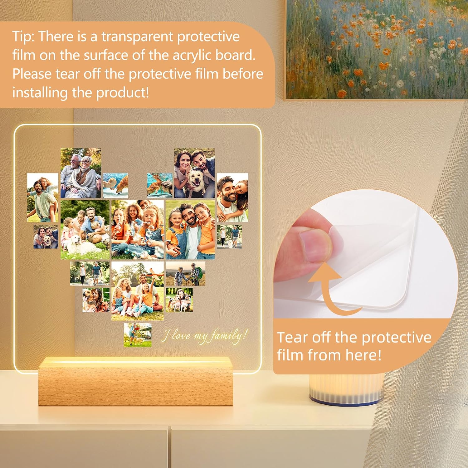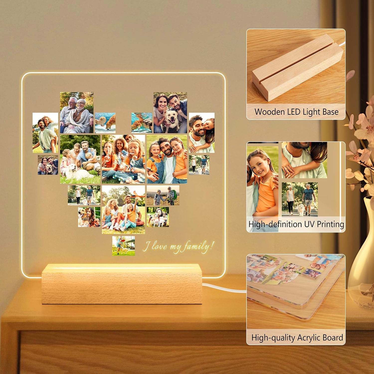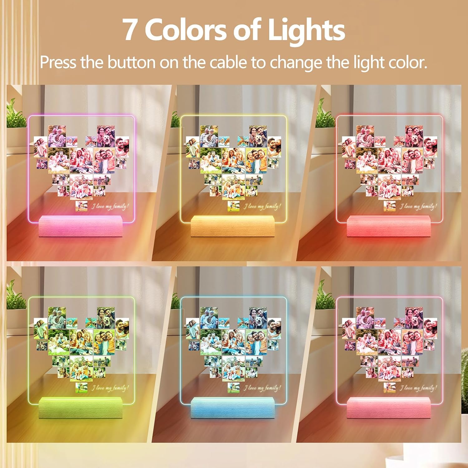 [💕Light up Your Picture] A personalized picture gifts paired with a colorful light base, light up your room and give you a different experience. Let your life be full of coloful and vitality, adds a touch of personalization and atmosphere to any space. This night light with wooden base is available in three different colors: single, 3-color and 7-color. PLEASE NOTE: Default without base (if you have a base and just want to change the photo, you can choose this one).