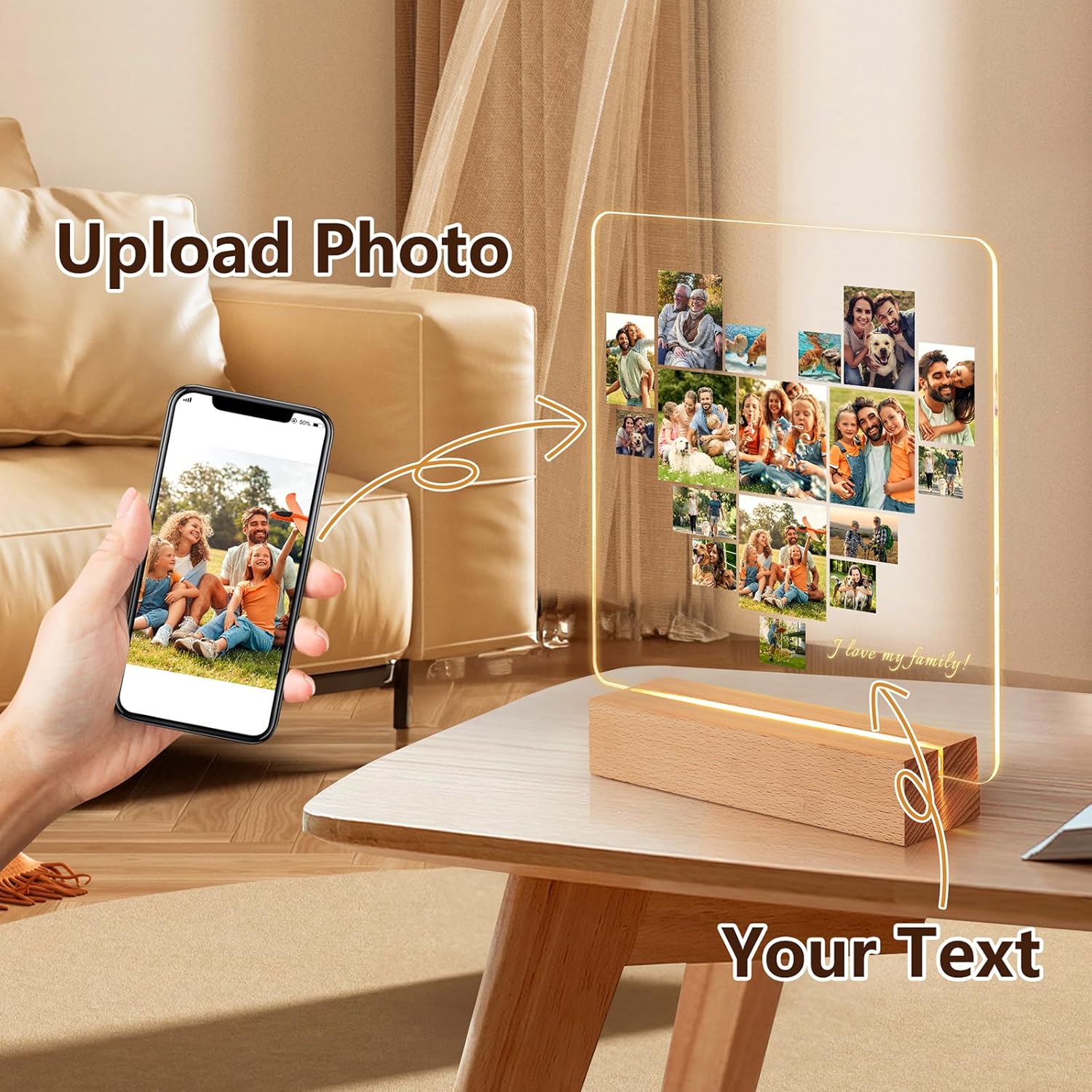 Personalized Picture Frames with Photos,Customized Photo Frames with Night Light,Personalized Photo Gifts for Family, Valentines Anniversary Wedding Birthday Gifts for Women Men Mom Dad Kids Friends