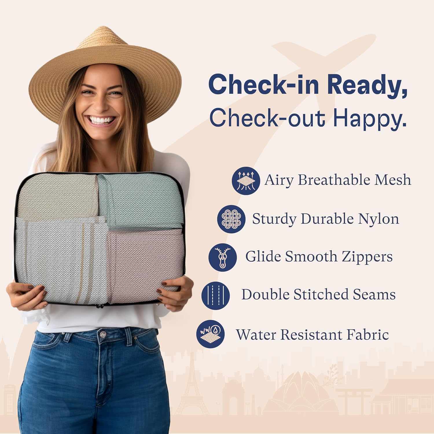 Shacke Premium 5 Packing Cubes Set – Lightweight Mesh Travel Luggage Organizers with Laundry Bag, 5-Piece Suitcase Storage System (Air Black)