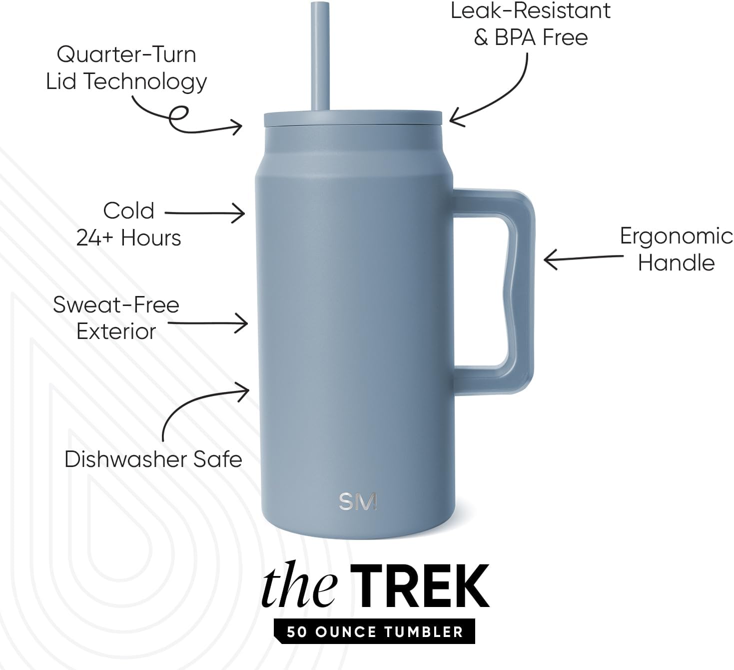 Simple Modern 50 oz Mug Tumbler with Handle and Straw Lid | Reusable Insulated Stainless Steel Large Travel Jug Water Bottle | Gifts for Women Men Him Her | Trek Collection | 50oz | Blue Dune