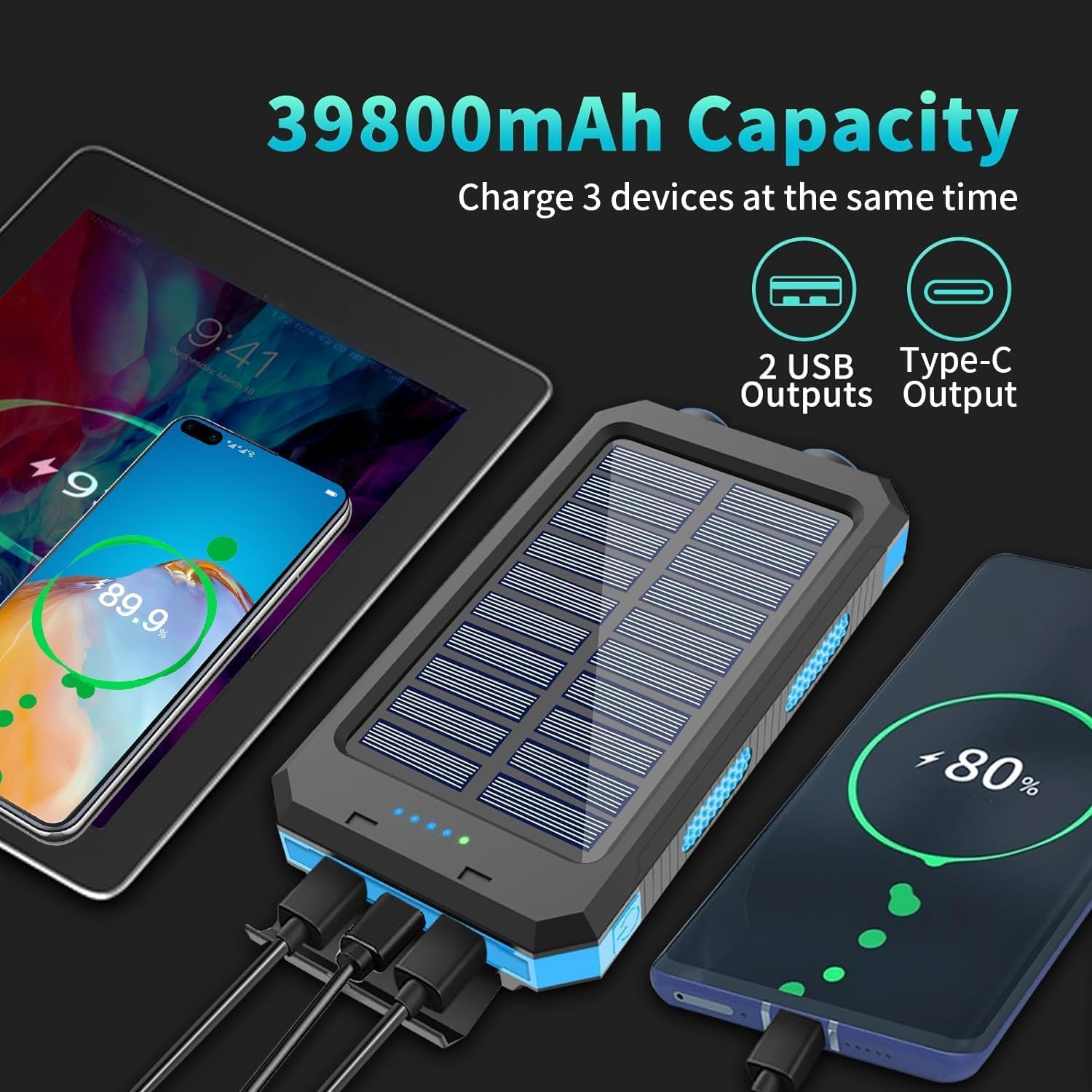 Solar Charger Power Bank, 39800mAh Portable Charger Fast Charger USB C Port Built-in Led Flashlight and Compass for All Cell Phone and Electronic Devices