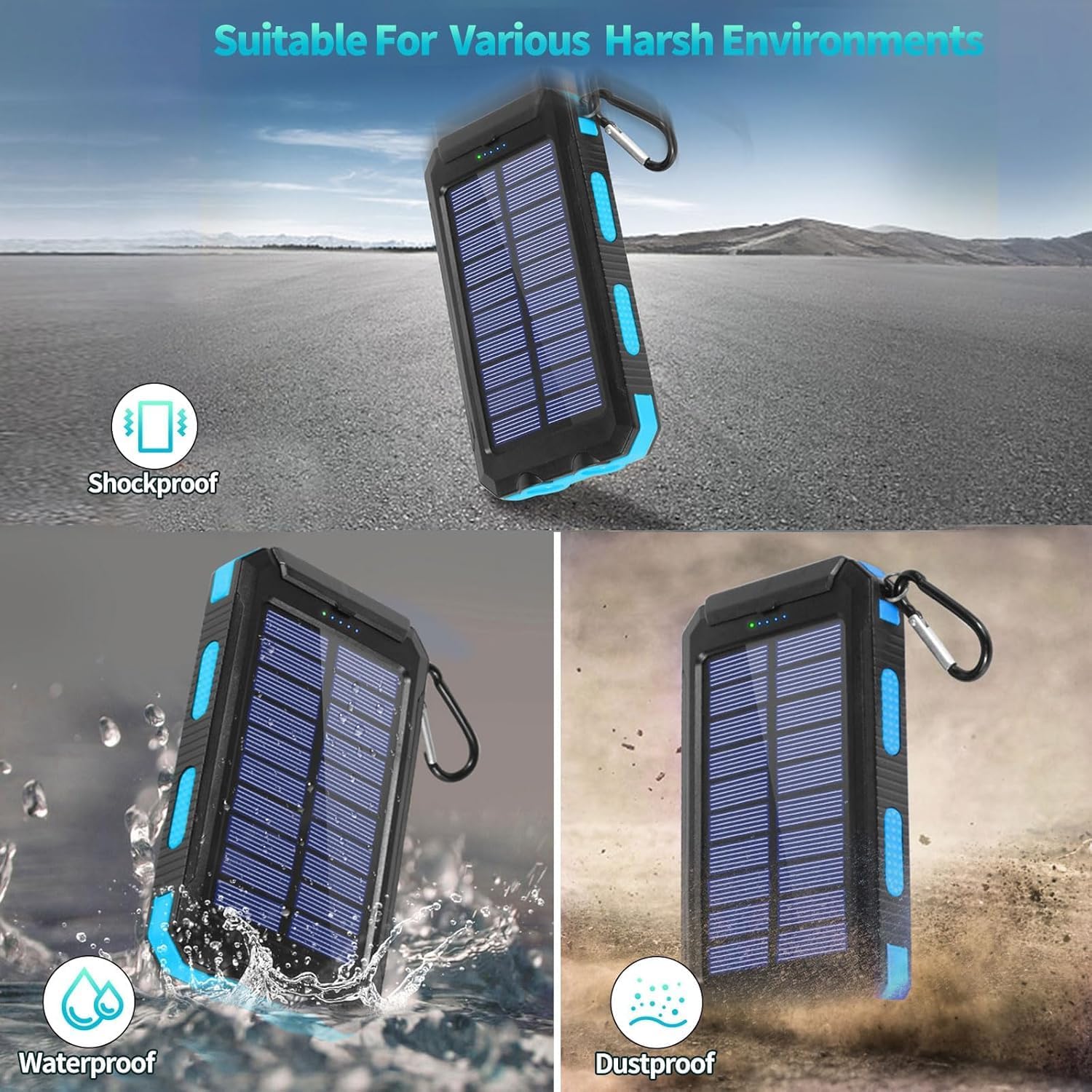 【Safe & Multi-intelligent Protection】The Portable Battery Charger made of durable ABS + PC materials, so the solar phone charger has excellent Dustproof, Shockproof, and IP65 Waterproof functions. In addition, the built-in PCB has multi-intelligent protection, such as Temperature Protection, Short Circuit Protection, Output Over-current Protection, and so on.