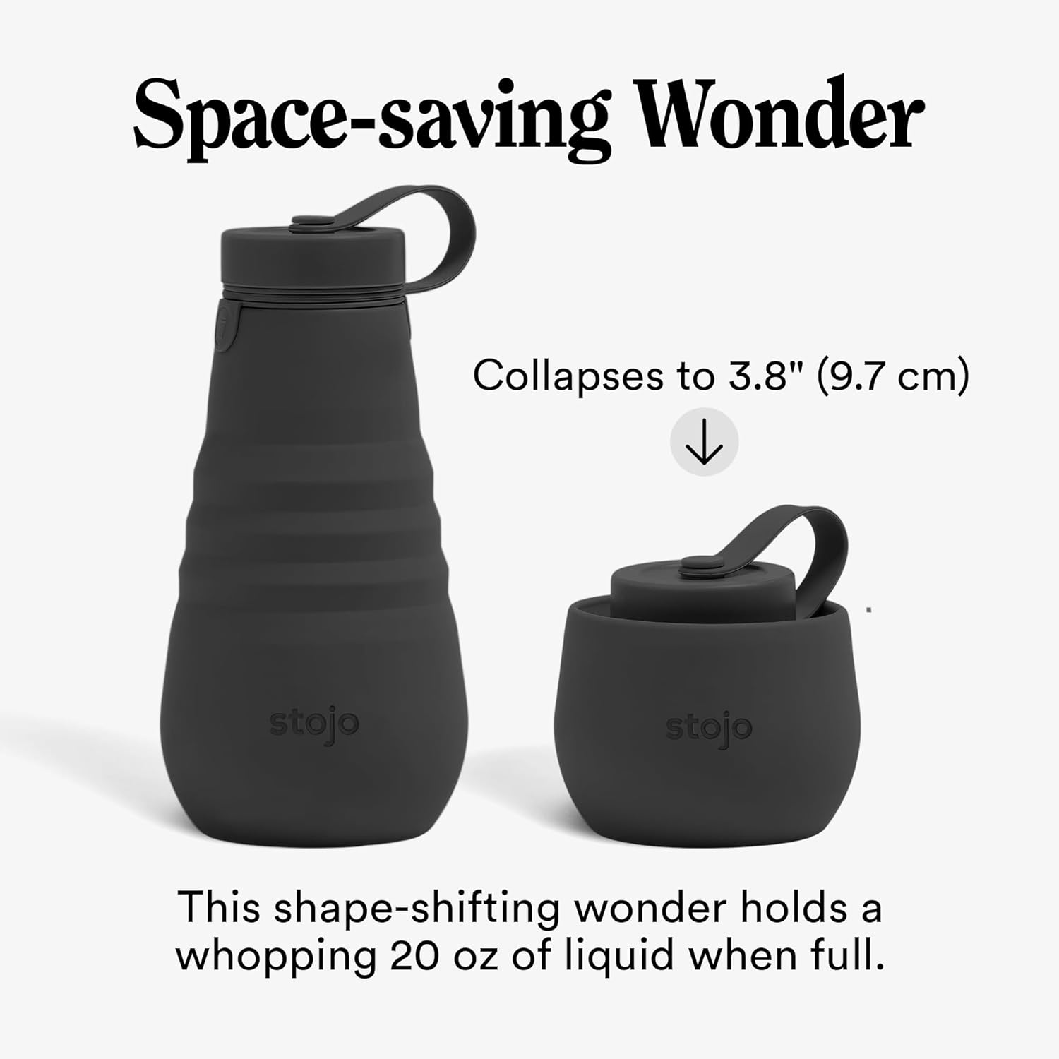 STOJO Collapsible Water Bottle – Carbon Gray, 20oz / 592ml – Leak-Proof Reusable Silicone Travel Cup for Hot & Cold Drinks – Microwave & Dishwasher Safe