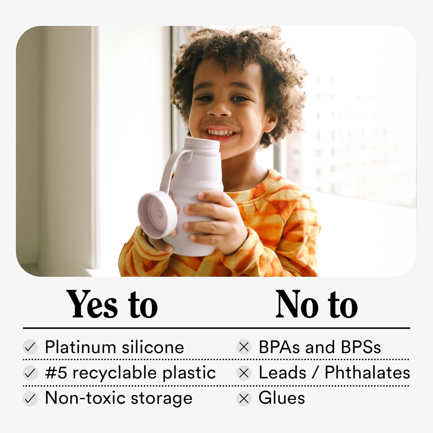 Safe & sound: Made from platinum food-grade silicone and #5 recyclable plastic, which means no BPAs, BPSs, phthalates, leads, or glues.