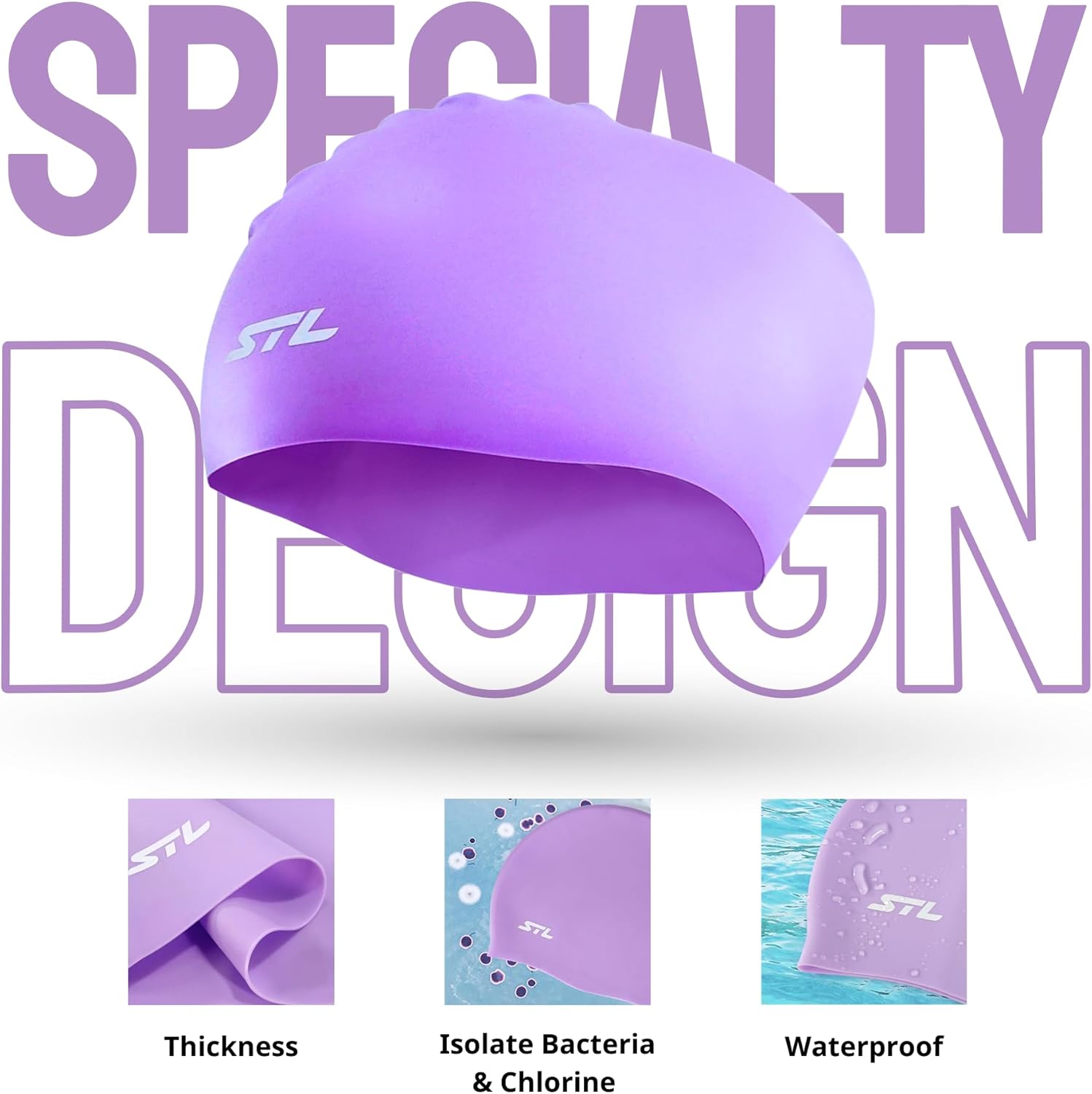 Swim Cap for Long Hair, Silicone Swimming Cap for Braids and Dreadlocks Women, Gifts for Friend – Soft, Comfortable, Non-Slip (Long-Hair Cap, Purple)