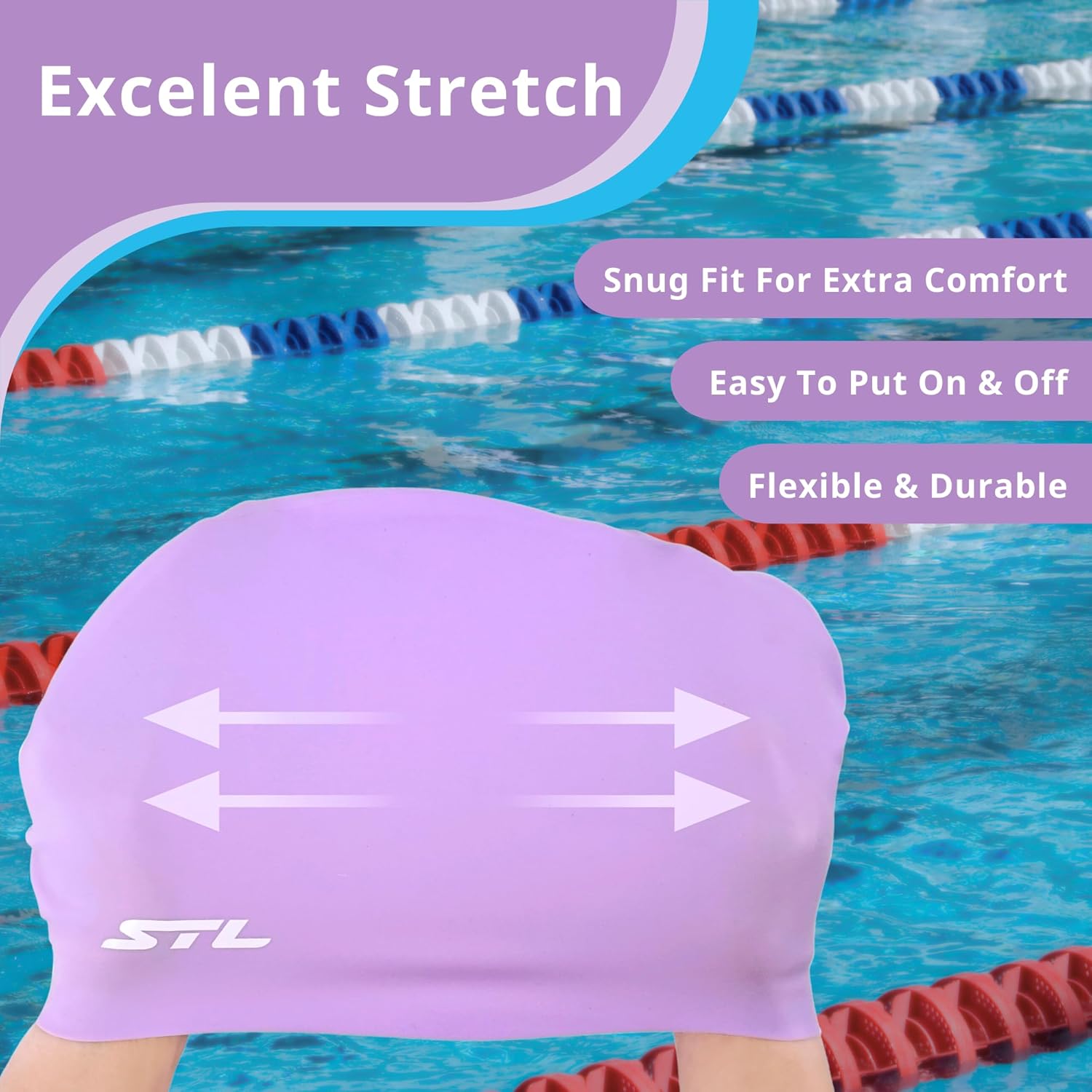 Soft Silicone Material: Crafted from premium-quality silicone material, this Swimming Cap For Women, Men offers exceptional stretchability and comfort. The soft texture prevents discomfort and ensures a gentle fit around the head.