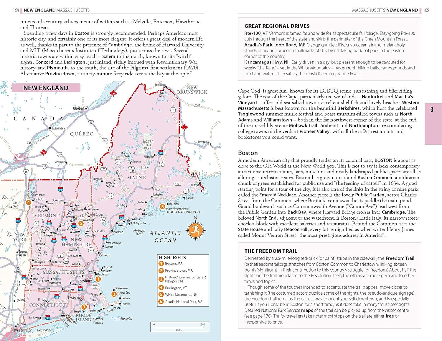Practical full-colour maps, with clearly numbered, colour-coded keys for quick orientation in New England, The Southwest and many more locations in the USA, reduce the need to go online.