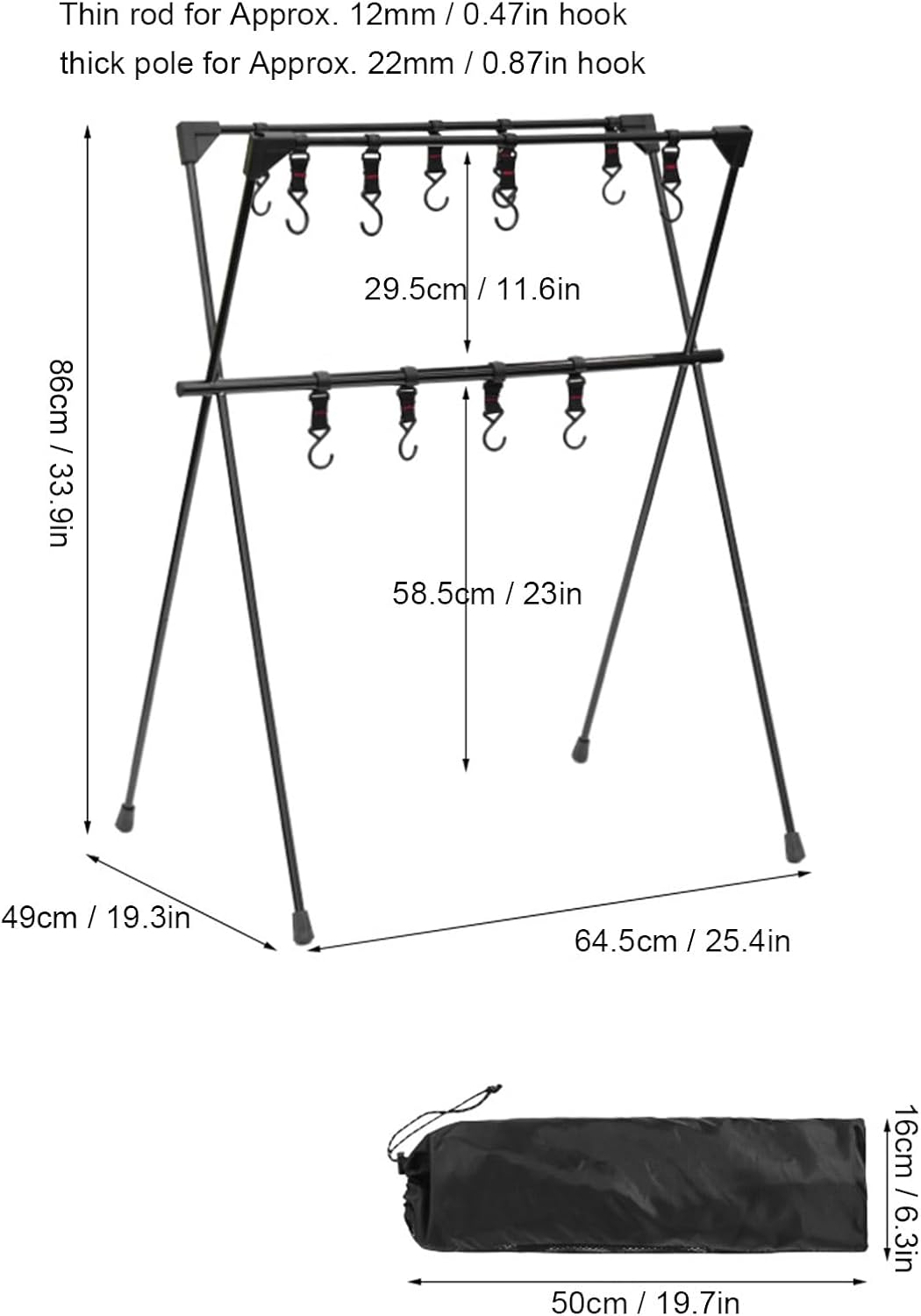 COMPACT AND PORTABLE: Designed for convenience, the Camping Hanging Rack is compact and easy to carry. Whether you’re heading to the beach, going camping, or enjoying a picnic, this lightweight rack can easily fit into your gear. Experience unmatched portability and functionality with this essential outdoor tool