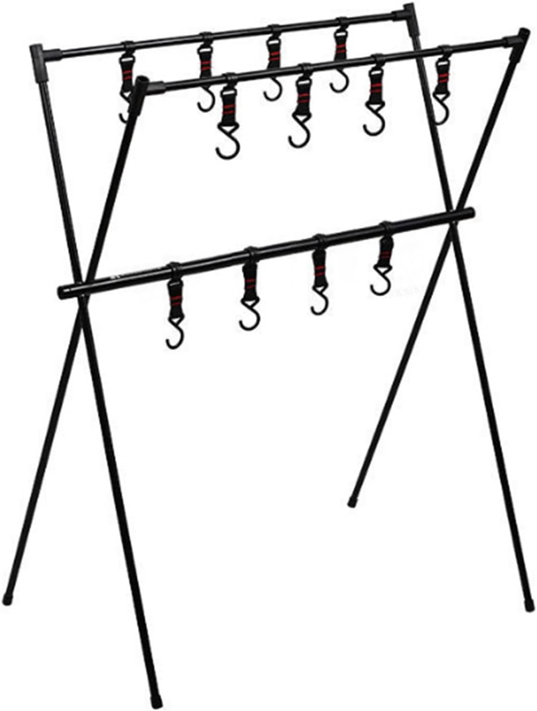 VERSATILE HOOKS: Equipped with multiple hooks, the Camping Hanging Rack allows you to easily hang your pots, towels, bowls, and more. This functionality makes it good for organizing your camping gear or keeping items accessible during outdoor cooking. Use it freely to enhance your camping experience and make the most of your space