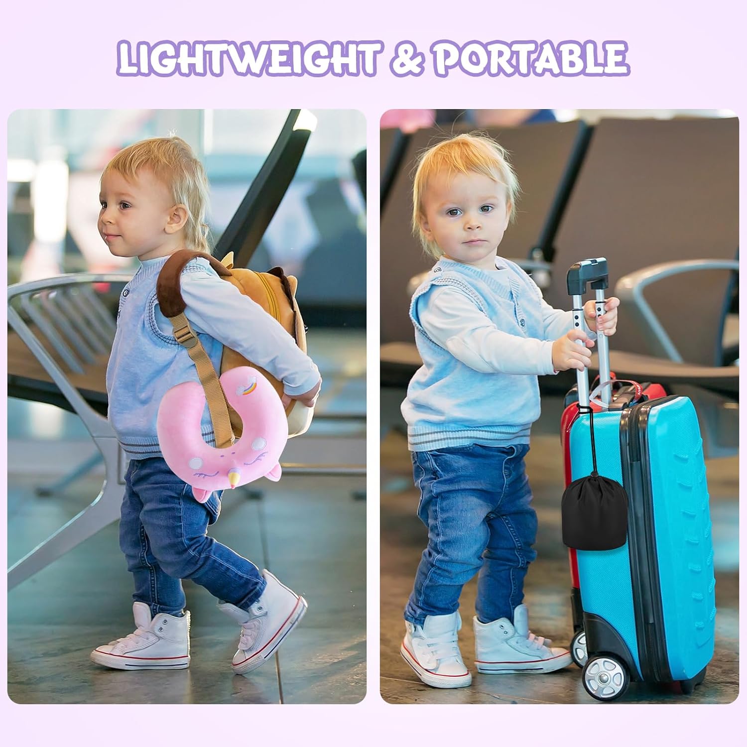 Travel Pillow for Kids Adult Cute Neck Pillow for Traveling Memory Foam Airplane Pillow Sleep Mask Animal Flight Pillow Head Rest Neck Support for Cars Long Flights (Pink, 3-8 Y/O)