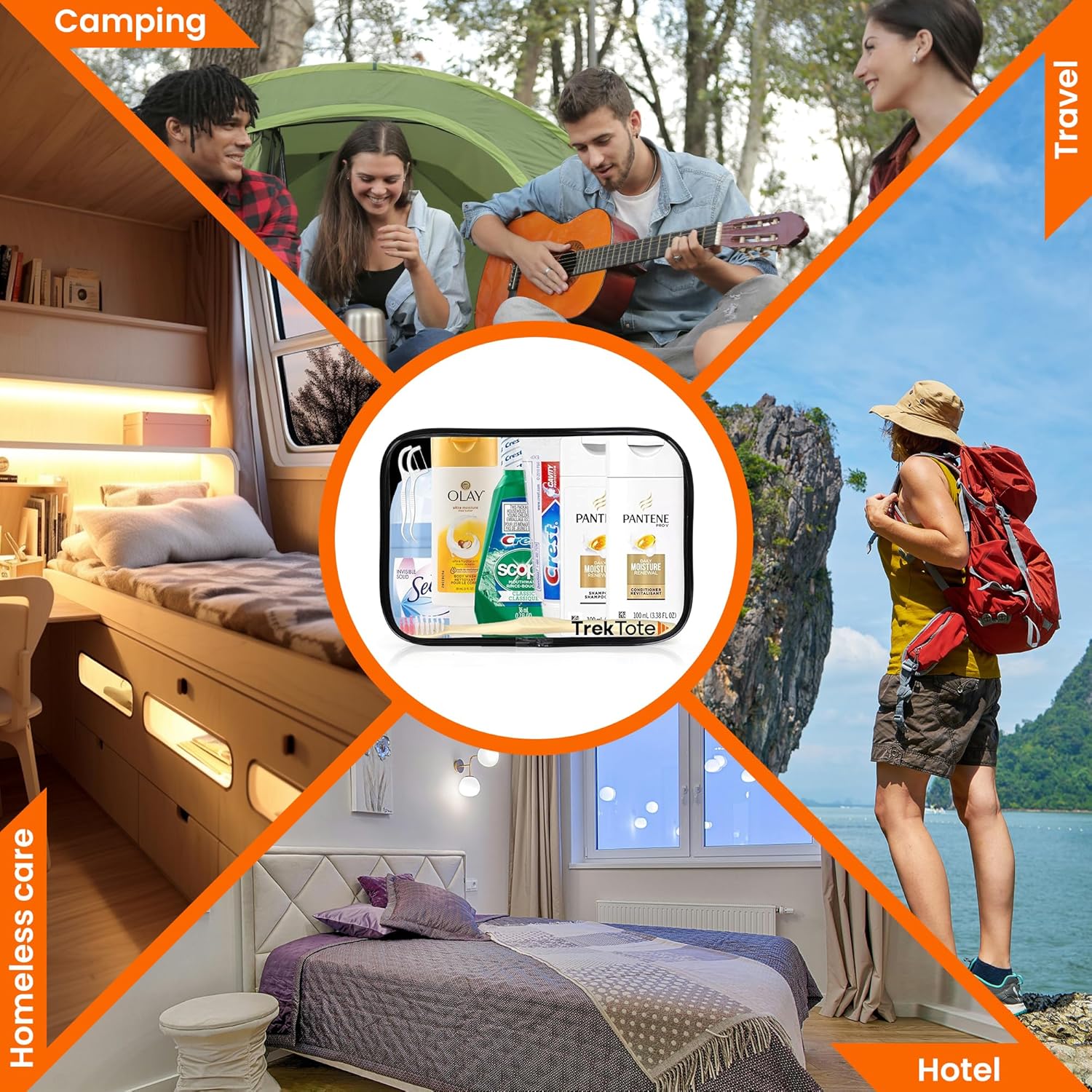 Trektote 15-Piece Travel Toiletries Kit – TSA Approved Pantene Hair Products, Toiletry Bag – Essential Toiletries Set for Men and Women – Portable, Reusable, and Perfectly Sized for Easy Packing