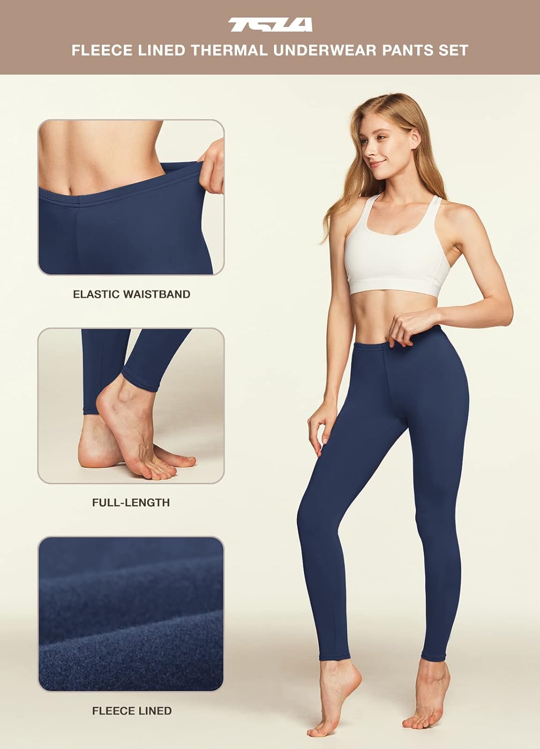 TSLA Women’s Thermal Long Johns Underwear Pants, Fleece Lined Leggings, Winter Compression Tights