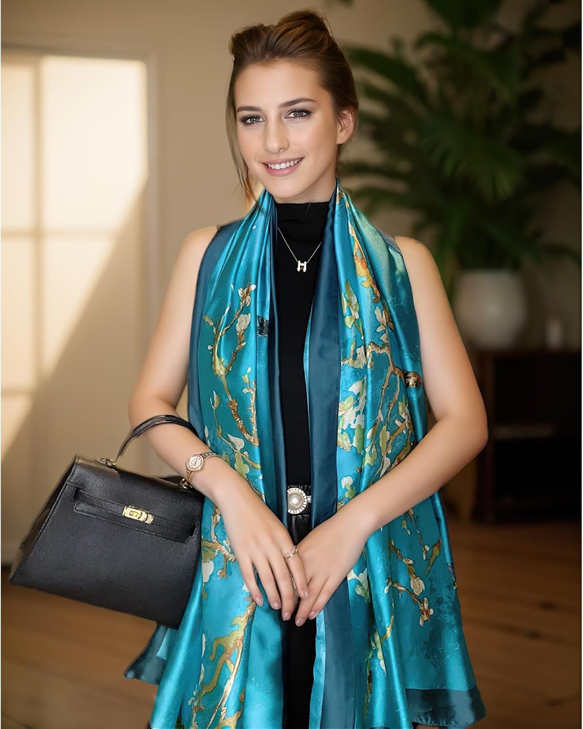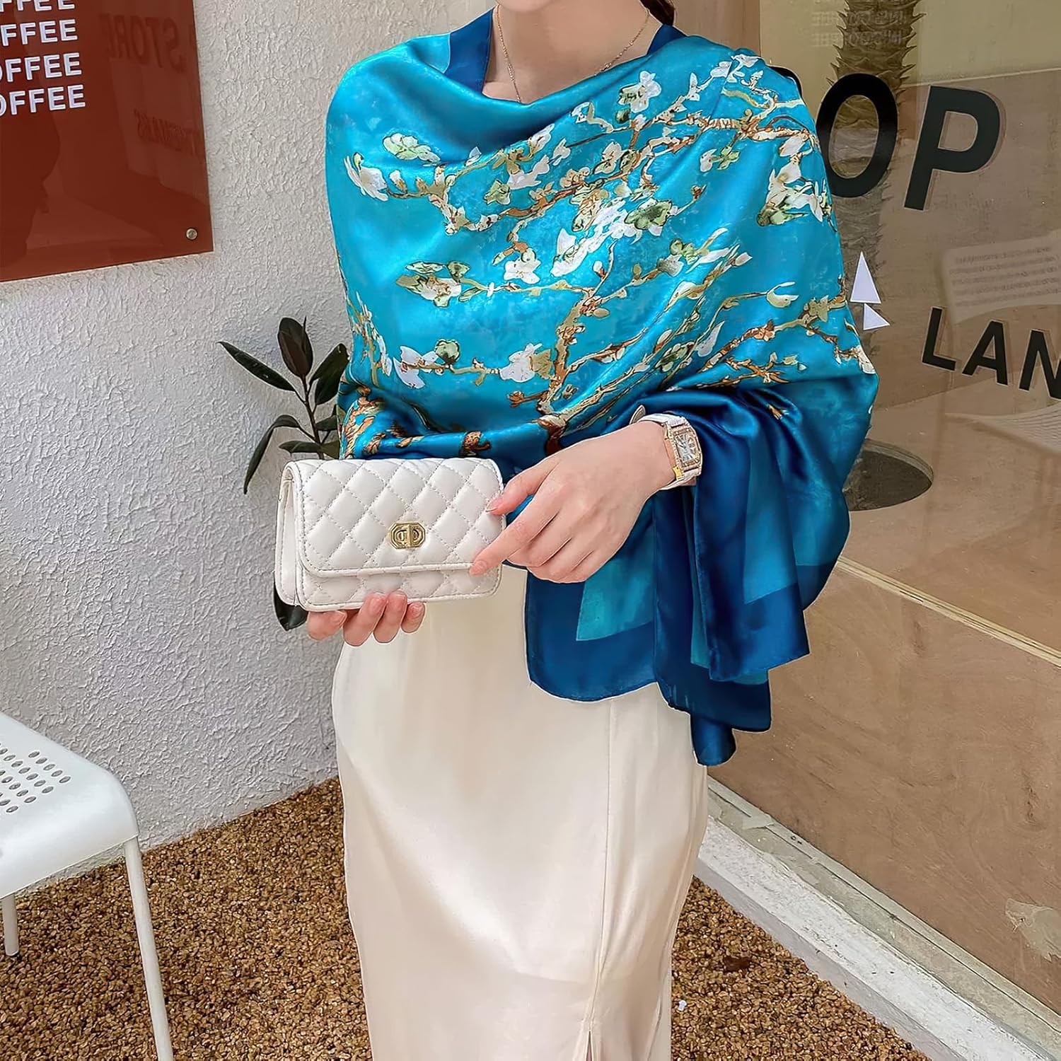 vimate 100% Large Silk Feeling Scarf-Women’s Fashion Long Mulberry Silk Satin Neck Scarf Sunscreen Shawl Wrap Headscarf