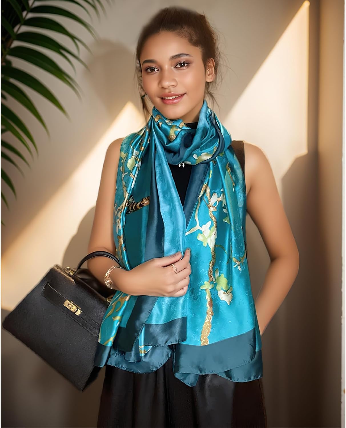 vimate 100% Large Silk Feeling Scarf-Women’s Fashion Long Mulberry Silk Satin Neck Scarf Sunscreen Shawl Wrap Headscarf