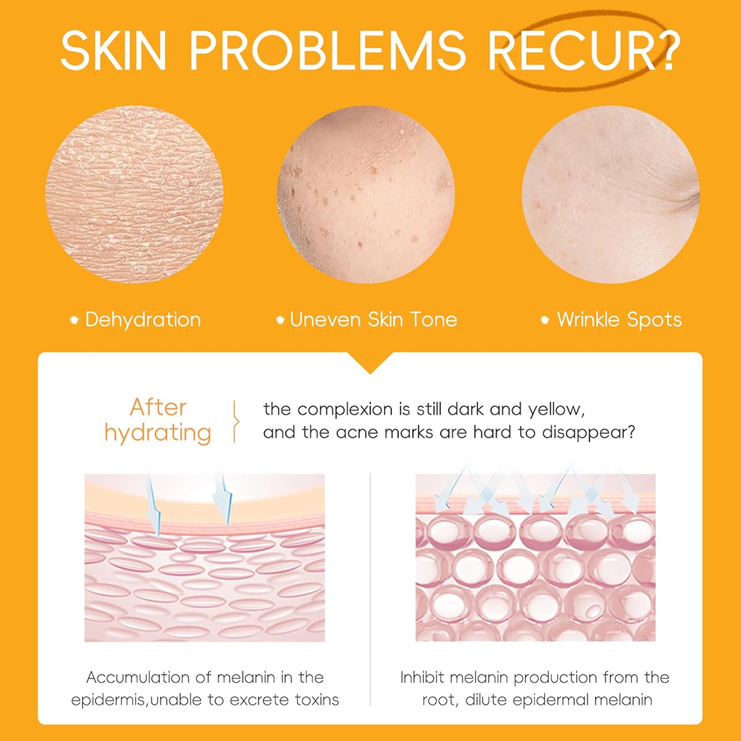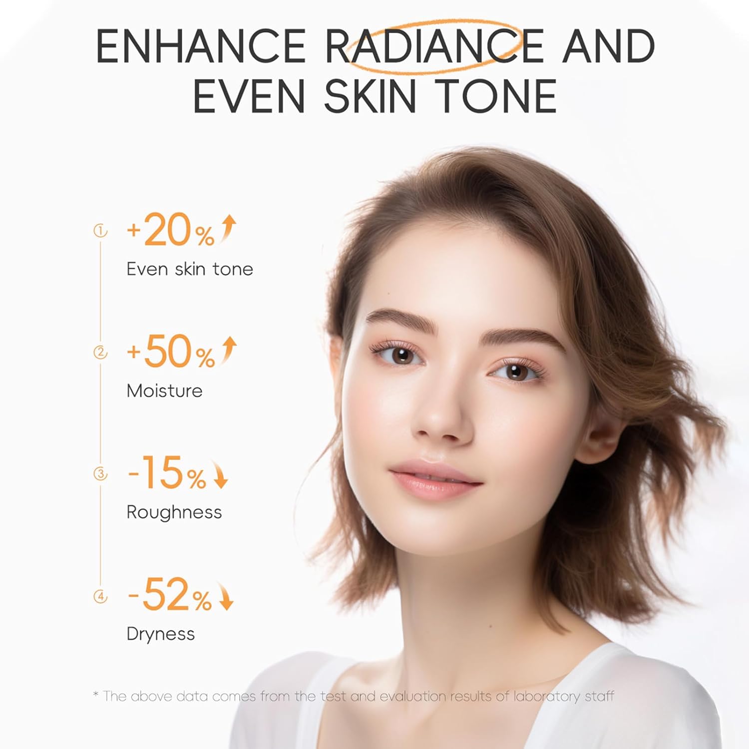 【Vitamin C Skin Care Routine Kit】: Elevate your skincare routine with this comprehensive set of moisturizing essentials: Cleanser-Toner-Cream-Serum-Eye Cream-Sunscreen-Gift Bag-Hair Clip. The vitamin C face care kit is the perfect skincare companion for your travels, effectively revitalizes dull and dry skin, reducing wrinkles, spots, and acne marks. Brilliant skin rejuvenating set also tightens the skin, minimizes pores, and maintains long-lasting moisture, leaving your skin radiant and supple