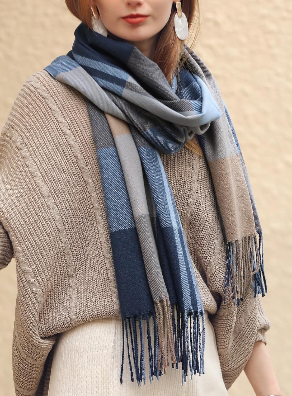 Wander Agio Women’s Fashion Scarves Long Cashmere Like Shawl Winter Warm Knit Large Tassel Plaid Scarf