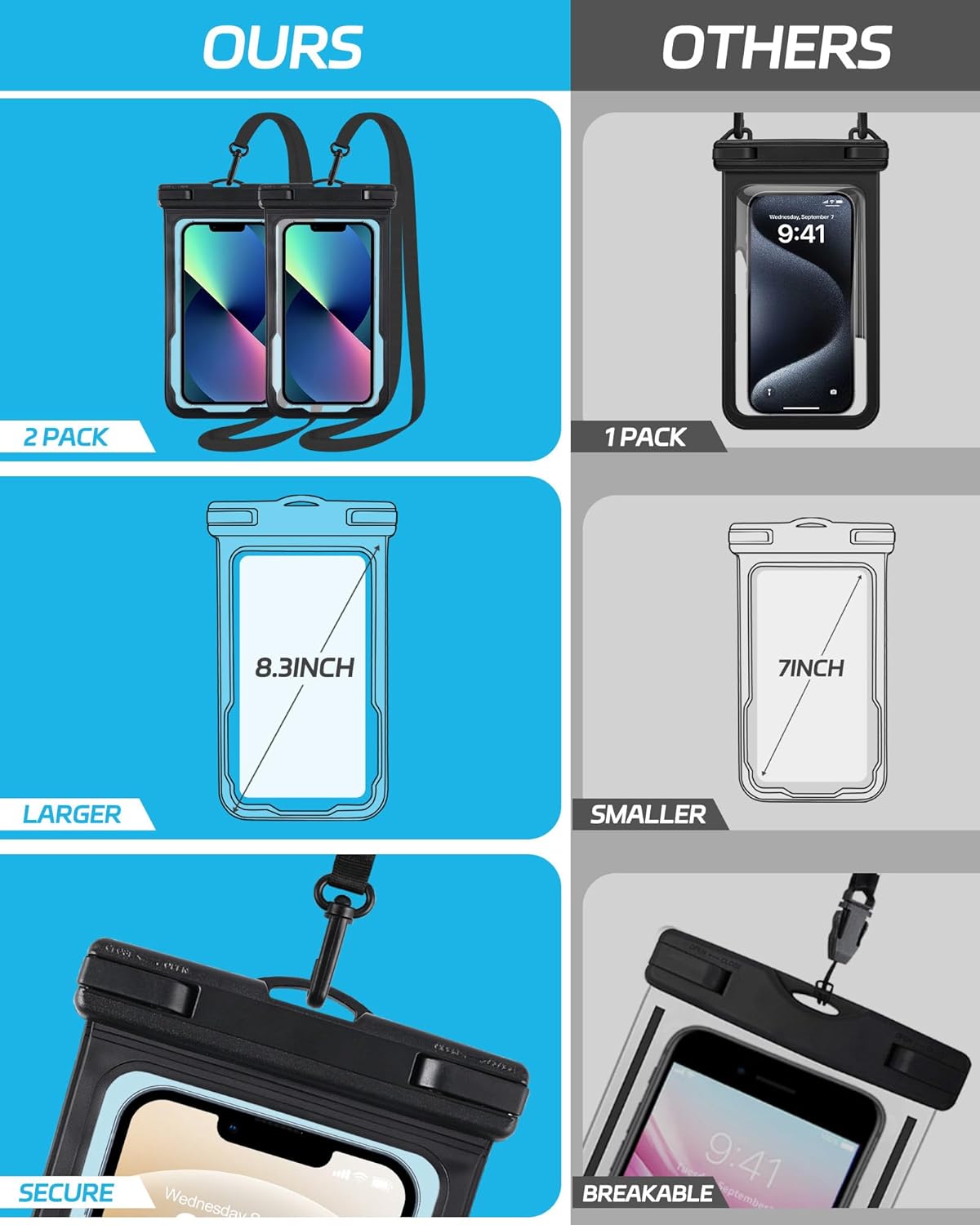 Waterproof Phone Pouch Cruise Ship Essentials 2025 Must Haves Dry Bag for Vacation Beach Travel Kayak Accessories Water Proof Phone Case for iPhone 15 14 13 Plus Pro Galaxy 2 Pack