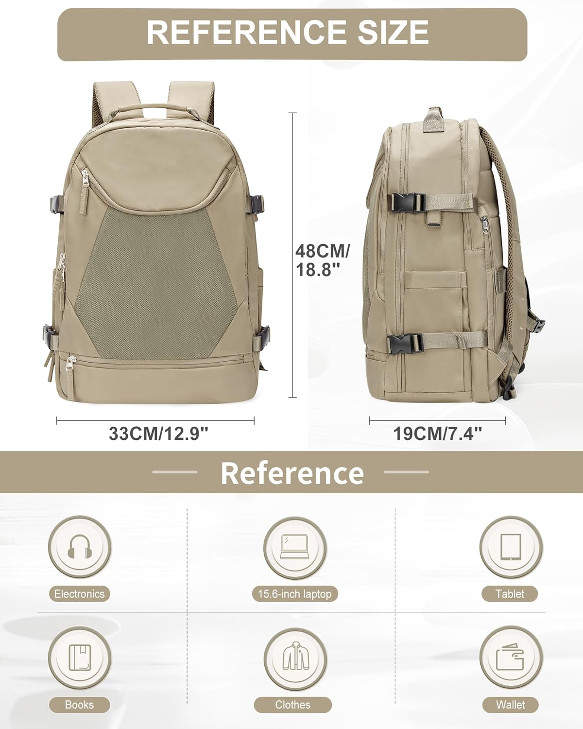 【Airline Certified Travel Backpack】 This travel bag measures 48×33×17cm/18.89×12.9×6.69” and weighs only 2 lbs. This luggage backpack meets the maximum size requirements for most IATA flights and can be placed directly in the overhead luggage rack and under the seat to help you save extra money. Plus, it opens up 180° like a suitcase so you can get through airport security quickly.
