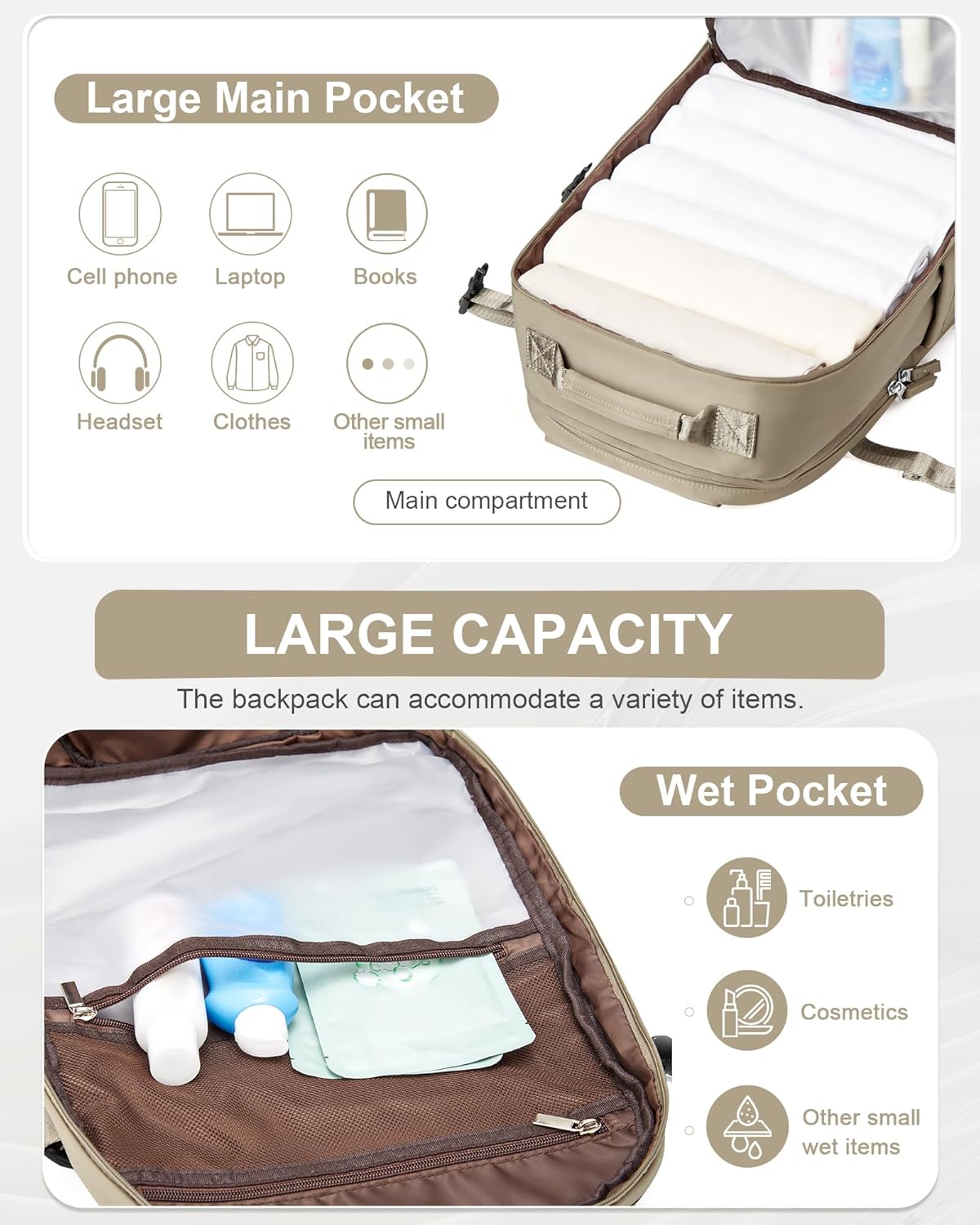wepadre Mochila De Viaje Large Travel Backpack Carry On Flight Approved Personal Item Backpack Traveling Backpack Carry On Backpack For Women Frontier Airlines Personal Item Travel Bag Brown
