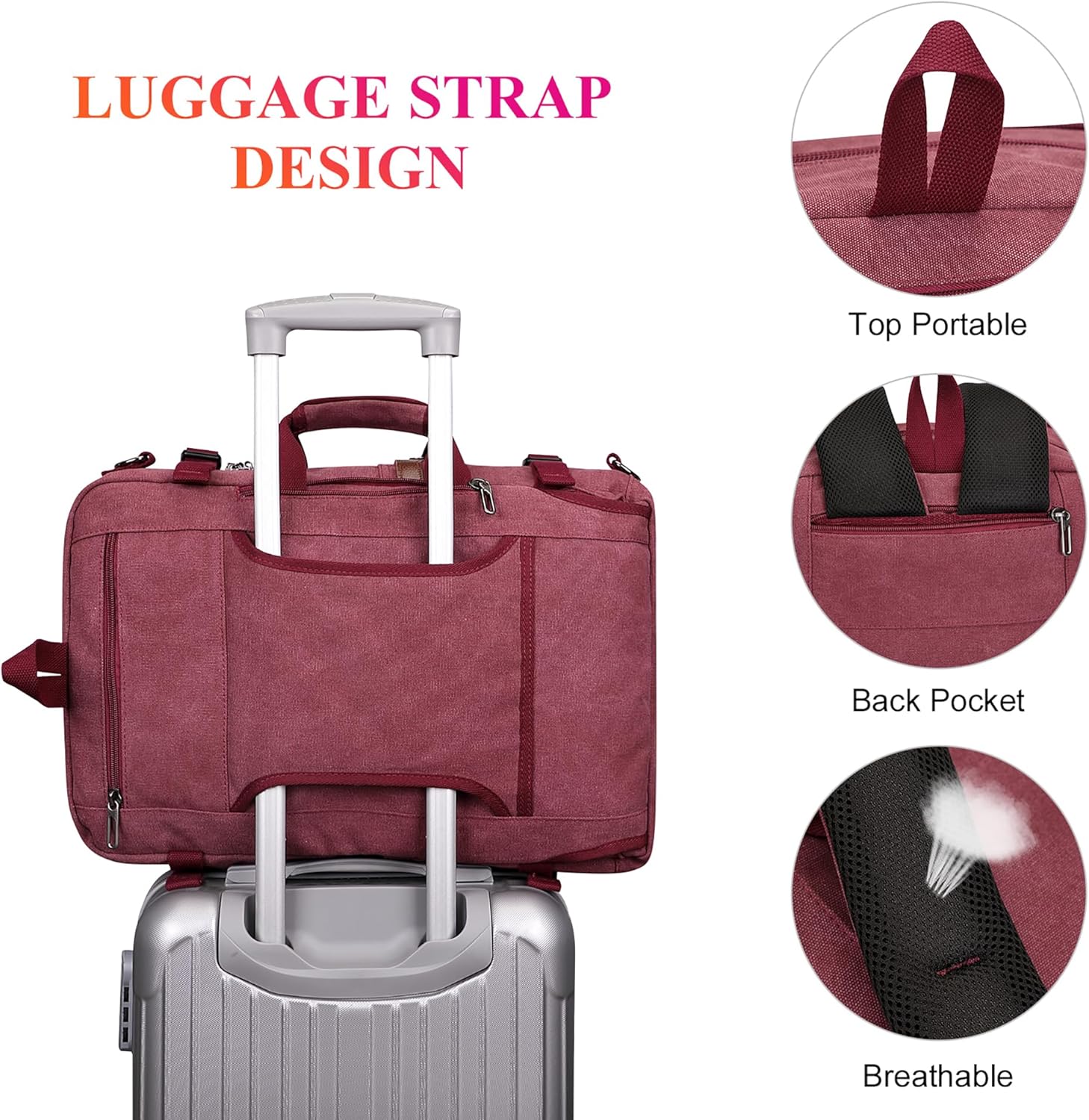 WITZMAN Canvas Travel Backpack for Women Large Laptop Backpack Fit 17 inch Carry-on Airline Approved Convertible Shoulder Rucksack(A6617-3 Red)