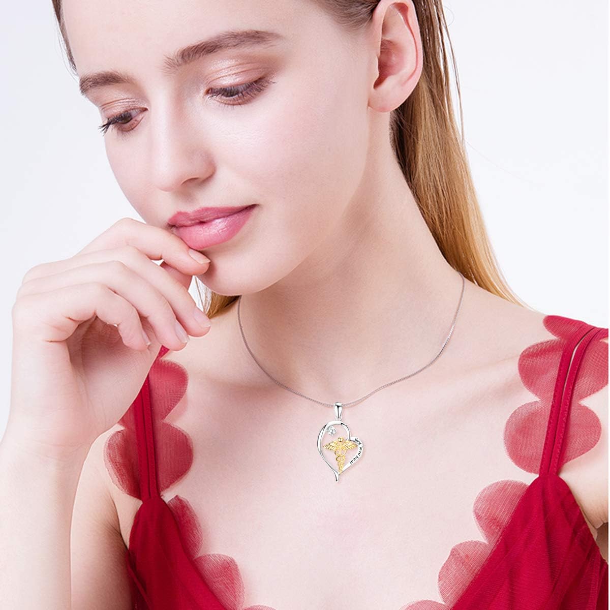 YFN 925 Sterling Silver Caduceus Angel Nursing Themed Pendant Necklace 18″